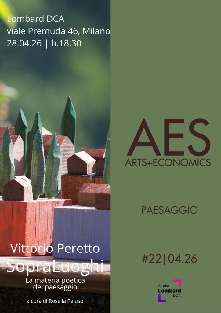 Il 28 Aprile 2026 alle ore 18, inaugura la mostra di Vittorio Peretto presso lo studio Lombard DCA, in viale Premuda 46 a Milano. In concomitanza, sarà presentato il prossimo numero di AES Arts+Economics. Il tema del nuovo numero è il Paesaggio, declinato nelle sue varie accezioni, da quello naturale a quello interiore.