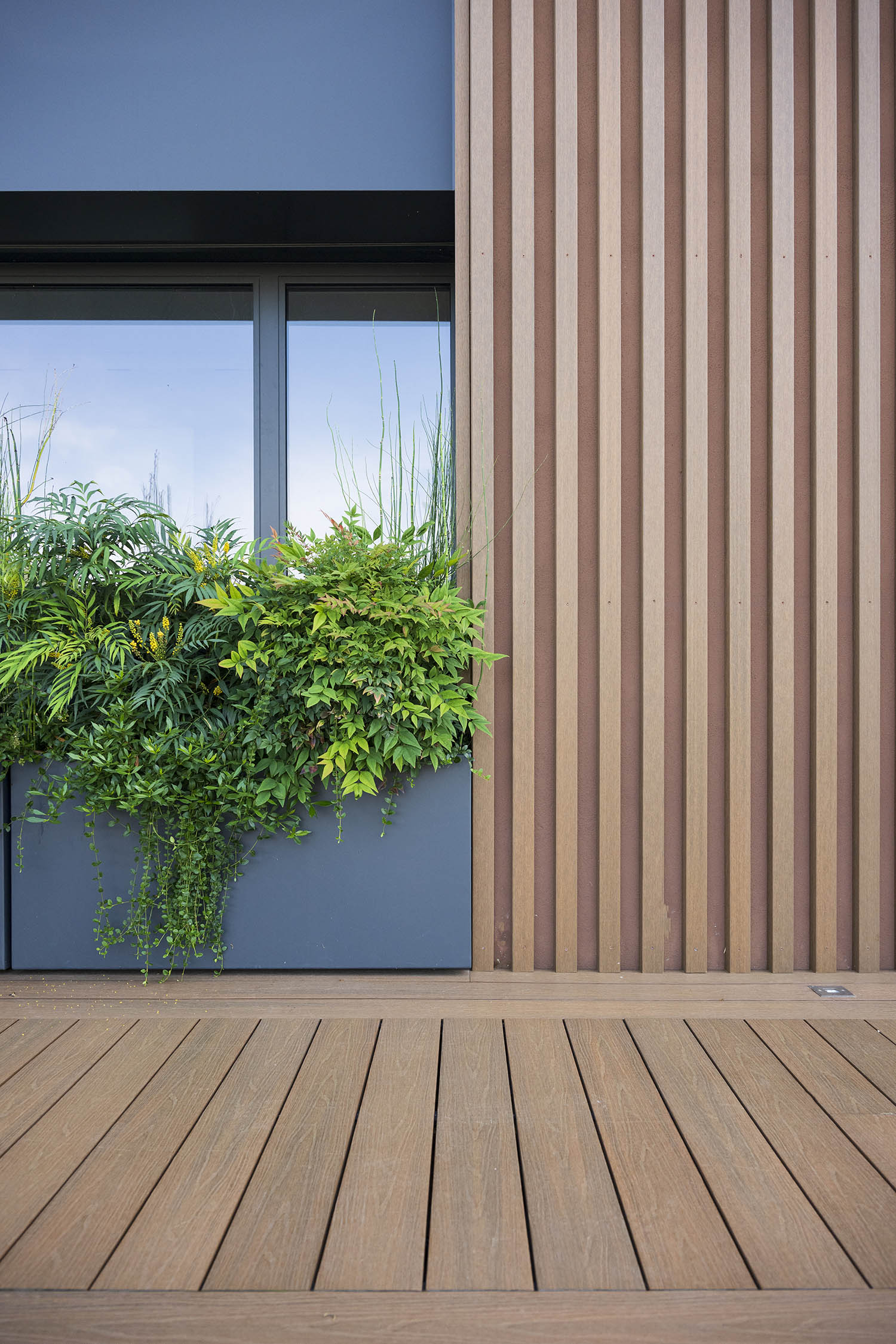 Il risultato è uno spazio accogliente e dinamico, che non è solo l’area verde dell’azienda, ma una vera vetrina all’aperto del metodo Idealverde